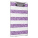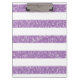 Trendy und Spaß Schein-Glitzer-Blick Stripes Klemmbrett. Dieses Ausrüstungsbeschreibungen ein gestreiftes Muster des funkelnd Imitat-Glitterblickes in Lila. Fügen Sie Text diesem Entwurf hinzu, um ihm eine persönliche Touch zu geben.