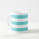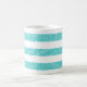 Trendy und Spaß Schein-Glitzer-Blick Stripes Kaffee-Tasse. Dieses Ausrüstungsbeschreibungen ein gestreiftes Muster des funkelnd Imitat-Glitterblickes im Türkis. Fügen Sie Text diesem Entwurf hinzu, um ihm eine persönliche Touch zu geben.