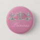 Dieses Spaßknopf-Abzeichen mit einem schattierten rosa Hintergrund kennzeichnet eine Krone in den Schatten des hübschen rosa und silbernen Graus. Rosa Diamanten des Imitats verzieren die Krone und der kundengerechte Text "Prinzessin" ist unterhalb er hinzugefügt worden.