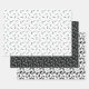 Haarstylistische Papierfolien mit drei verschiedenen Mustern mit Schere, Kämmen, Blastrockner und anderen Werkzeugen, die für eine Haarstylist in Schwarz, Weiß und eine Touch Türkis nützlich sind.