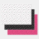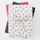 Fairstyllische Papierfolien mit drei Mustern mit Schere und Kämmen in verschiedenen Kombinationen von weiß, heiß rosa und schwarz.