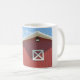 Helle rote Scheune an einem sonnigen Sommertag in Iowa.