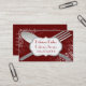 Stilvolle tiefrote Geschäftskarte, mit Grafiken einer großen silbernen Tongabel und -löffels und eleganter weißer Schnörkel, in den Ecken. Eine dekorative weiße und silberne Tontextplakette, über dem Tafelsilber, hat kundenspezifischen roten Text. Die Rückseite der Karte ist in einem dunkelroten, mit dem kundenspezifischen weißen Text erfolgt, der bereit ist zu personifizieren. Stilvoll stehen Sie heraus Karte, die einen großen dauerhaften Eindruck für Ihren Catering oder jedes mögliches Nahrungsmittelservice-Geschäft verlässt.