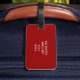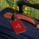 SCHICKES GEPÄCK TAG_, SCHWARZE INITIALEN AUF WEISSEM UMBAU. 16 ROT-HINTERGRUND. WEISSER TEXT AUF DER 16 ROT-RÜCKSEITE