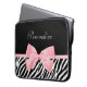 Erhalten Sie Ihren Fashionista an mit diesem Chic und stilvollen Tierdruck 15 Zoll Laptop-Hülse. Dieser Modezusatz hat einen trendy Schwarzweiss-Zebradruck und ein weiches weibliches hellrosa Band, die in einen niedlichen girly Bogen gebunden werden. Personifizieren Sie, indem Sie den Namen Ihres jugendlich Mädchens hinzufügen. Ebenedruckbild, nicht tatsächliches Band. Ursprüngliches Kunstcopyright von ©OhSoGirly