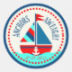 Nautische Themenaufkleber mit Segelboot und Lebensretter in Türkis, Rot, Marine, Blau und Sahne.