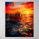 Dieses Poster hat ein Schiff bei Sonnenuntergang darauf.