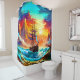 Dieser Duschvorhang hat eine schöne Schiffsszene darauf.