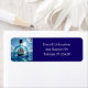 Rücksendeadressen-Aufkleber zum Thema Ozean. Ein Schiff in einer Flasche, das auf dem Meer schwebt. Eine atemberaubende Illustration für diejenigen, die ein nautisches Thema Liebe.