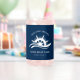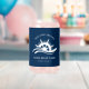 Willkommen an Bord Ihres Bootes oder in Ihrem Beach Party mit diesem modernen schicken marineblau-weiß-nautischen Glas, mit einem stilisierten Schiffrad und Ozeanwellen, mit individuellem Bootsnamen und Registry. Karo der Kollektion für passende Produkte. Wenn Sie andere Farbtöne oder mehr passende Produkte wünschen, kontaktieren Sie mich bitte über den Zazzle Chat.