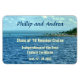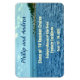 Die Blues und Aquas des Meeres und des Himmels und der Rand einer kleinen Insel sind der Hintergrund für diesen Magneten, den Sie mit Ihrem Namen und Kreuzfahrtinformationen für Ihre Familie oder Gruppe Kreuzfahrt anpassen können. Es ist ein Blick auf das Meer von einem Kreuzfahrtschiff aus. Benutzen Sie für den Einbau eines Türmarkers in der Sitzecke an Bord, um anschließend für ein Souvenir behalten.