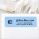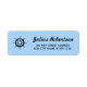 Das Lenkrad des Schiffes ist dunkelblau mit Text auf blauem Hintergrund.
