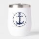 Dieses Thermalweindesign zeichnet sich durch ein auffallendes marineblaues Design eines Ankerseils und eines Seils aus, umgeben von einem runden Rahmen mit dem Namen, der Registrierungsnummer und dem Familiennamen oder anderen Texten Ihres Bootes. Das ideale Geschenk für einen Bootsstart, eine neue Hütte oder ein Seehaus. Suchen Sie ID619, um weitere Produkte mit diesem Design zu sehen.