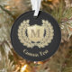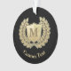 Symbol für Kranz und Schild. Benutzerdefinierte Hintergrundfarbe. Benutzerdefiniertes Monogramm. Benutzerdefinierter Text auf beiden Seiten.