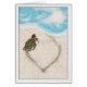 Eine Seeschildkröte drückt seine Liebe aus, indem sie zum Ufer kommt anbietet, eine Single-Rote Rose, und ein Herz im Sand zeichnet, wie die Sonne sich oben reflektiert. Ein großes Geschenk des Valentines Tagesfür den Schildkröteliebhaber Sie Liebe!