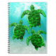 Liebe du Schildkröten? Drei grüne Meeresschildkröten zeigen Tierkunst.