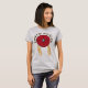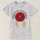Schild Maiden T Shirt mit einem roten gezeichnet Schild und goldenen Haaren gezeichnet.