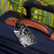 Schillernder schwarzer Eulen-Entwurf mit Gepäckanhänger