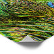 Drucken mit einem nahen Bild der wunderschönen, schimmernden Augenopfen auf einem Pfauenzug, in dem die zauberhaften grünen, blauen und bronzenen Details dieser Schwanz-Federn hervorgehoben werden. Einzigartige und schöne Wanddekoration für Vögel und Naturliebhaber. Foto aufgenommen in Arcadia, Kalifornien.