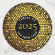 Der Silvestertisch Confetti zeichnet sich durch ein kreisförmiges Muster goldfarbener Lichter gegen schwarzes Flair aus, das einen runden Rahmen für die Jahresanzeige schafft. Jede Größe hat einen Bereich für verschiedene Nachrichten. Gestalt eines festlichen Tischdekoration für eine Feiertagsfeier, Geburtstagsparty, Silvesterhochzeit oder ein Cocktail-Party für Ihren Urlaub. Verfügbar mit passenden Produkten.
