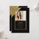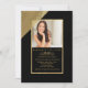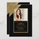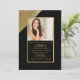Ein Foto mit vielen Pizzaz. Das dramatische Goldspiel gegen Schwarz vermittelt einen atemberaubenden Eindruck. Benutzen Sie es, um einen Abschluss, Geburtstagsfeiern und fast jede glückliche Gelegenheit anzukündigen.Die Karte ist leicht anzupassen mit Ihrem Wortlaut, Schriftart, Schriftart Farbe und Auswahl von sechs Papiertypen.