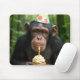 Schimpanse hält einen Geburtstagskuchen Mousepad