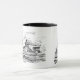 Tasse mit Zeichnungen des berühmten deutschen Schlachtschiffs Bismarck aus dem Zweiten Weltkrieg, wobei der Name des Schiffes in Frakturschrift geschrieben ist.