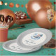 Feiern Sie die Ankunft Ihres Kleinen mit dieser zauberhaften Papiertafel mit einem Aquarellbaby, der friedlich auf einer Wolke schläft. Die niedliche Abbildung ist in einem runden Rahmen eingebettet, umgeben von einer ruhigen, hellgrauen Kulisse. Ideal, um Ihrem Baby-Duschbad-Party eine Touch Whimsy hinzuzufügen