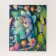Personalisiertes Feenpuzzle. Niedliche Fee, die auf einer Lotus-Blume auf einem Lilienpolster mit Blume und Pilzhintergrund schläft. Niedliche Märchenstil-Illustration. Süße Träume.