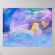 Das Poster zeigt eine Frau, die in den Wolken schläft, während der Mond hinter ihr scheint. Es ist ein wunderschönes Bild, das ein traumhaftes Gefühl hat, mit pinken Blues und Purples.