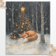 Decoupage Packpapier mit einem bezaubernden schlafenden Fuchs vor einem Weihnachtsbaum im Wald.
