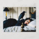 Schlafende Frau und eine Raven Poe Postkarte