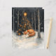 Die Kunst des Scrapbook-Buches mit einem bezaubernden Schlaffuchs vor einem Weihnachtsbaum im Wald.