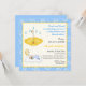 Der schlafende Baby Junge strahlt eine blau-gelbe quadratische Einladung aus, mit einem schlafenden Baby auf einer Wolke, einem Halbmond und einem Stern darüber und einem gelben Regenschirm mit Wassertropfen. Es gibt eine gelbe Linie und einen blauen Rand mit weißen Kreise und Punkten. Eine niedliche Einladung mit einem bezaubernden Baby, das sich perfekt für ein Baby mit Sprinkle oder Dusche eignet. Einige Elemente von Trina Clark und mit freundlicher Genehmigung von vectorportal.com.