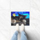 Das Originalwerk von ZoeSPEAK auf dieser Doormat begann mit einem Originalfoto einer Katze, die vor einem Fernseher schlief. Die Katze ist ein Kalico, mit weißen Pfoten, die auf die Kamera zukommen. Ein Programm zum Thema Finanzen ist im Fernsehen zu sehen, mit einer leuchtend blauen Grafik mit den Worten "HAUPTSTADT FINANZIERUNG". Unter der Katze, die ihr Interesse an finanziellen Angelegenheiten zeigt, stehen die Worte "VENTURE CATIPALIST", in einem Text mit einem Katzenfellmuster und einem blauen Glühen dahinter, wie das blaue Licht hinter dem Fell der Katze an seinen Rändern. Es gibt einen gelben Beitrag mit dem Wort "Willkommen" auf ihm, Set für Sie zu personalisieren oder zu löschen, wenn Sie es vorziehen.