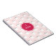 Ein Wendelheft mit individuelle Name und Monogramm als Initialzündung in einem rosa Kreis. Entworfen mit einem niedlichen Muster schlafender Kätzchen, die überall friedlich und glücklich aussehen. Rosa Hintergrund.