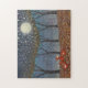 schläfrige Füchse - Abbildung von Sarah Knight. Bild zeigt 3 schläfrige Füchse, die auf dem Waldboden schlummern. Sie sind rostig orange, ihre Schwänze sind weiß gekippt mit einer schwarzen Band. Sie sitzen auf dem Blatt Wurf. Im Hintergrund stehen die Bäume hoch am Himmel. Der Himmel ist in türkisfarbenen Farbtönen, Perikwinkeln, Lila und Grau gehalten. Auf der Baumgrenze befindet sich ein Baumkronendach aus Blätter, das in den Sternenhimmel verblasst. Der Mond scheint hell. Es ist eine skurrile Geschichtenbuch-Illustration, perfekt für Naturliebhaber.