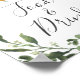 Lassen Sie Ihre Gäste mit unserem Schild für die Speisen und Getränke im Schlafsessel, dem Aquarellgarten Eukalyptus und dem eleganten Schriftart in handgeschriebenem Stil eine angenehme Note.