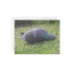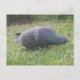 Diese Postkarte zeigt ein Foto einer wilden Taube, die in meinem Garten im Rücken aufgenommen wurde. Der Vogel pickte im Gras nach Samen, der von einem Vogelschleuder abgewrackt worden war. Als er seinen Kopf hinabsteckte, um zu packen, schloss er sein Auge und sieht daher aus, als ob er schläft.