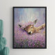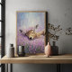 Ein zartes Ölgemälde zeigt eine friedliche Ruhepause inmitten eines Feldes lebendiger violetter Blumen. Die Doe ist mit einer Krone aus rosa Rosen geschmückt und verleiht ihrem ruhigen Schlummer eine Touch Eleganz. Die sanften Pastelltöne des Hintergrunds schaffen eine traumhafte Atmosphäre, während die sanften Pinselstriche der Szene ein Gefühl der Ruhe verleihen.