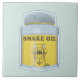 Eine lustige Abbildung einer Plastikflasche mit einer Schlange darauf. Das ist Schlangenöl. Ein Design, das von alternativer Medizin aus Western-Filmen inspiriert wird. Ein lustiges Design für jeden, der nicht an zusätzliche Medikamente glaubt.