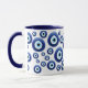 Kundengerechte Tasse mit blauem Augendiagramm - Mittelmeersymbol für Schutz gegen das neidische schlechte Auge.