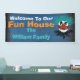 Begrüßen Sie Ihre Nachbarn, Familie und Freunde zu Ihrem eigenen Halloween-Spiegelkabinett. Featured ist und beängstigender Clown ein Grinsen, ein Übel, ein verrückt. Halloween-Fahnenzeichen ist für das Anzeigen in Ihrem Yard oder Ihr Halloween-Party oder Tanz perfekt. Fertigen Sie diese Fahne mit Ihrer eigenen Textnachricht besonders an.