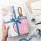Niedliche, rosa Weihnachtsverpackung. Großer Santa in Rosa drucken. Schönes mädchenhaftes Papier. Rosa Weihnachten.