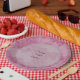 Schlichte Keramik Oberfläche Rosa beliebiger Text Pappteller