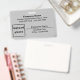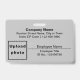 Schlichte Texte gestalten Abzeichen mit Mitarbeiter-Foto, das Sie für Sie und Ihre Mitarbeiter anpassen können. Gestaltungsfarben und -form sind schwarze Texte auf grauem Hintergrund und Rechteck im Querformat. Um dieses Abzeichen anzupassen, geben Sie Ihren Firmennamen oder Firmennamen, Adresse, Telefonnummer, Mitarbeitername, Mitarbeitertitel, Mitarbeiter-ID-Nummer ein und laden Sie Mitarbeiter-Foto hoch. Nach der Texteingabe und dem Hochladen von Foto, bitte Karo das Aussehen auf der Vorder- und Rückseite. Wenn Ihnen das Aussehen gefällt, können Sie jetzt Ihre Bestellung aufgeben. Wenn Sie die Größe ändern und die Texte und das Foto verschieben müssen, um in dieses Abzeichen zu passen, ändern Sie bitte das Design-Tool. Sie können auch andere Änderungen am Design-Tool vornehmen, je nachdem, welches Erscheinungsbild Sie bevorzugen, z.B. die Hintergrundfarbe, die Schriftart-Farbe und den Schriftart-Stil.