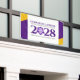 Unis, Universitäten, Oberschulen und Hochschulen können mit diesem modernen, zeitgenössischen Banner, das mit elegantem Set auf lila, goldenen und weißen Hintergründen besticht, Abschluss-Zeremonien mit viel Raffinesse verleihen. Mit Glückwunschbotschaft, geschlossen Jahr, Name der Schule/Uni/Universität, akademisches Logo und/oder Slogan. Farben und Schriftart können nach Wunsch modifiziert werden. Design © W.H. Sim, Alle Rechte vorbehalten. Weitere Informationen unter zazzle.com/expressionsoccasions