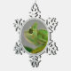 Schließung des verschleierten Chamäleons unter den Schneeflocken Zinn-Ornament