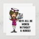 Eine niedliche Krankenschwester-Design mit einer braunen Krankenschwester mit einem Tablett mit Wasser und einem Krug und Text, der lautet "Wir wären alle noch schlimmer ohne Krankenschwester" auf T - Shirt, Säcken, Tasse, Aufklebern, Karten, Magneten und anderen Pflegeartikeln und Geschenken.