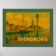 Gedenken Sie Svendborg, Dänemark mit dieser atemberaubenden vintage-inspirierten Illustration. Mit dem historischen Schloss, dem lebendigen Hafen und den Segelbooten ist dieses Design perfekt für Historienliebhaber, Reisende und Liebhaber malerischer europäischer Küstenorte.